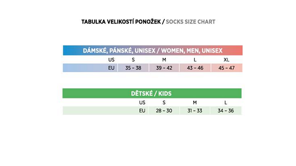 Materiál je prodyšný, rychleschnoucí a díky antibakteriální úpravě odolává zápachu i při dlouhodobém nošení. Zesílená oblast chodidla zvyšuje odolnost a pohodlí, zatímco pružný úplet přes nárt zabraňuje sesouvání během pohybu. Podkolenky nekoušou, výborně izolují teplo a díky promyšlené konstrukci zajišťují pohodlí i při celodenním nošení v náročných podmínkách.